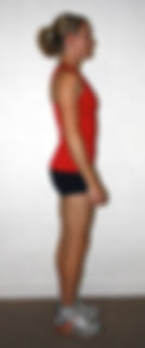 Notice that you can draw a straight line down from the ear, through the middle of the shoulder, through the ankle. Now let’s picture what would happen with tight shoulders. It would look something like this: